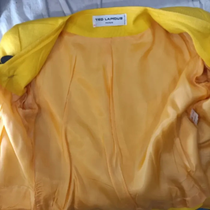 Veste jaune satinée Ted Lapidus Paris boutons dorés et fleur noire T42 A1186 - photo numéro 11