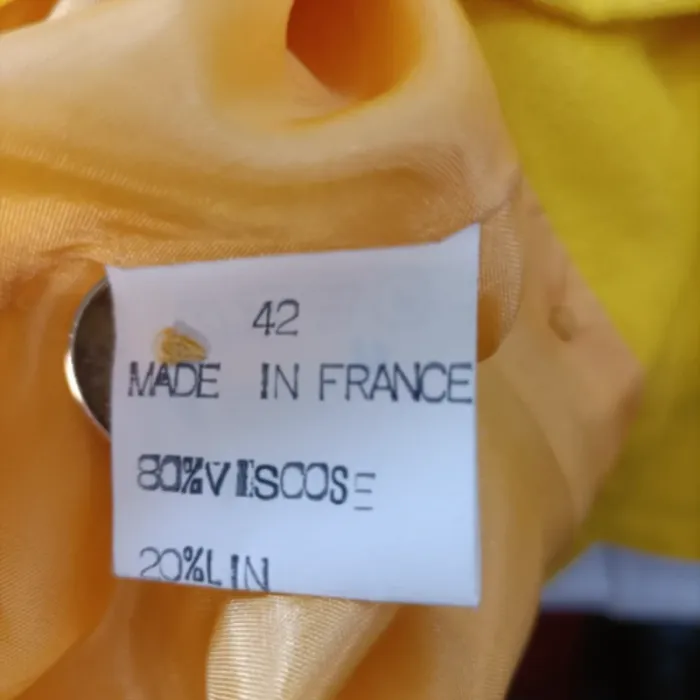 ⚠️ LIRE ATTENTIVEMENT LA DESCRIPTION ⚠️ 🚀 Envoi rapide 💎 État 10/10 – Très bon état Veste structurée Ted Lapidus Paris, couleur jaune vif, à l’esprit couture, ornée de boutons dorés sur double rangée et d'une fleur noire amovible sur l’épaule. Col en cœur dégagé, coupe cintrée avec bas pointu, manches courtes, poches discrètes à l'avant. Entièrement doublée satinée, cette pièce Made in France évoque les codes du tailleur revisité avec originalité et élégance. 📏 Taille : 42 🧵 Matière : 80 % viscose, 20 % lin 📎 Doublure : 100 % acétate 🏷️ Marque : Ted Lapidus Paris Toutes les ventes sont reversées intégralement à l'association Amitié Partage, association à but non lucratif qui vient en aide aux plus démunis. Votre achat n'est pas seulement un vêtement, c'est un véritable soutien à notre association. veste jaune femme, ted lapidus vintage, veste couture, style tailleur rétro, blazer cintré, pièce made in France, veste élégante soirée, bouton doré