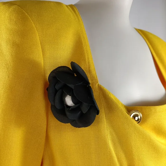 Veste jaune satinée Ted Lapidus Paris boutons dorés et fleur noire T42 A1186 - photo numéro 5