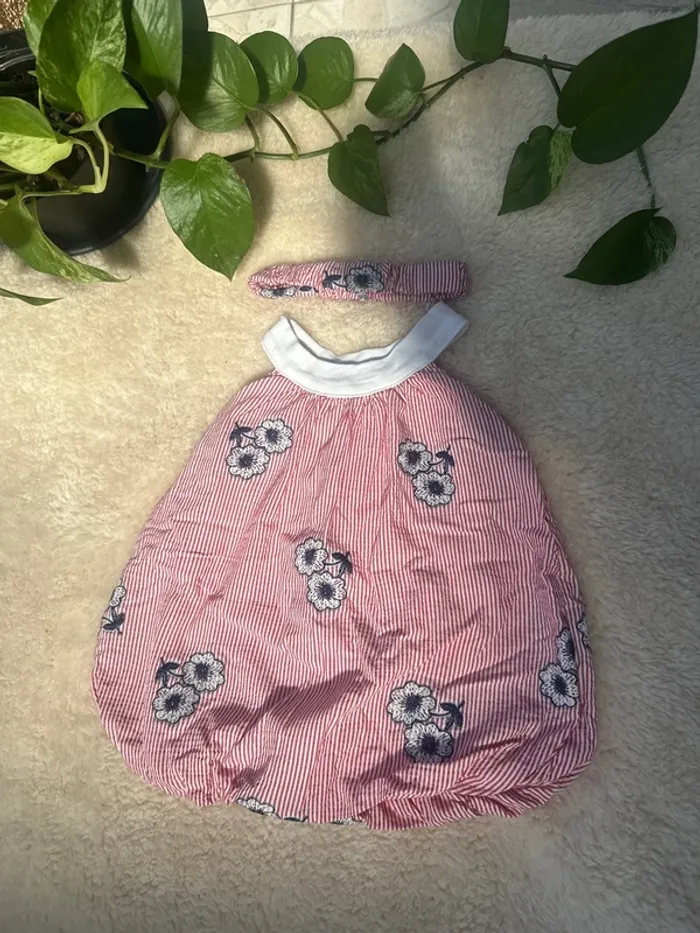 Robe à rayures et fleurs bouffantes et bandeau assorti