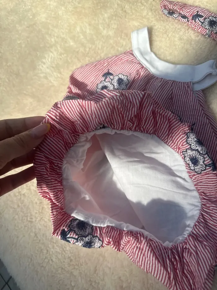 Robe à rayures et fleurs bouffantes et bandeau assorti - photo numéro 2