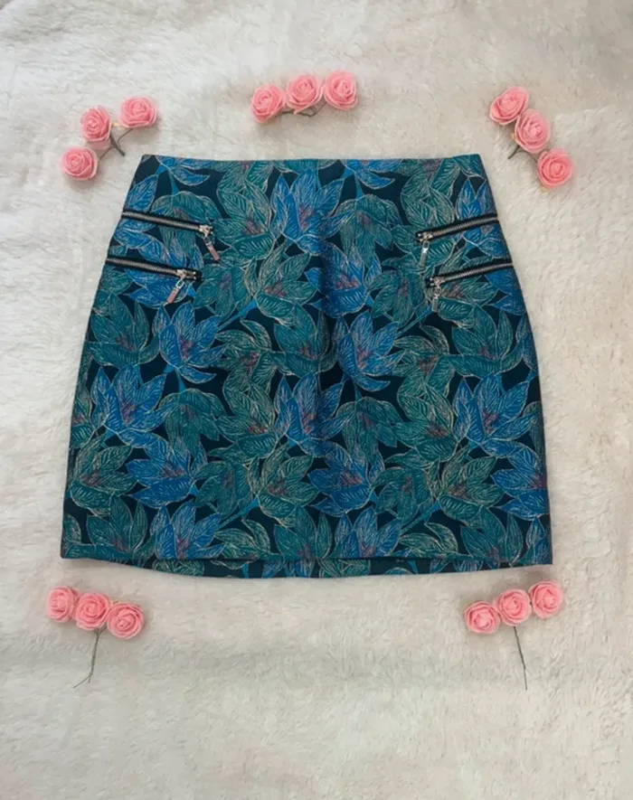 Jupe Pimkie motifs feuilles brodées fil doré - photo numéro 1