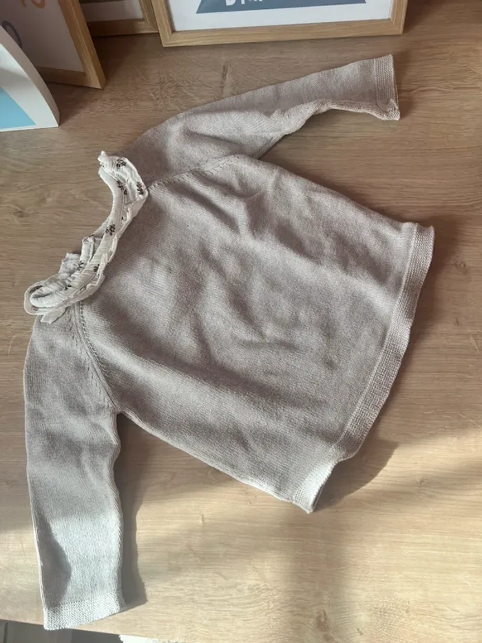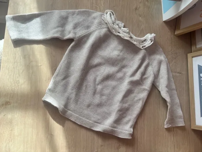 Pull léger avec col à fleurs Très bon état Taille 12 mois