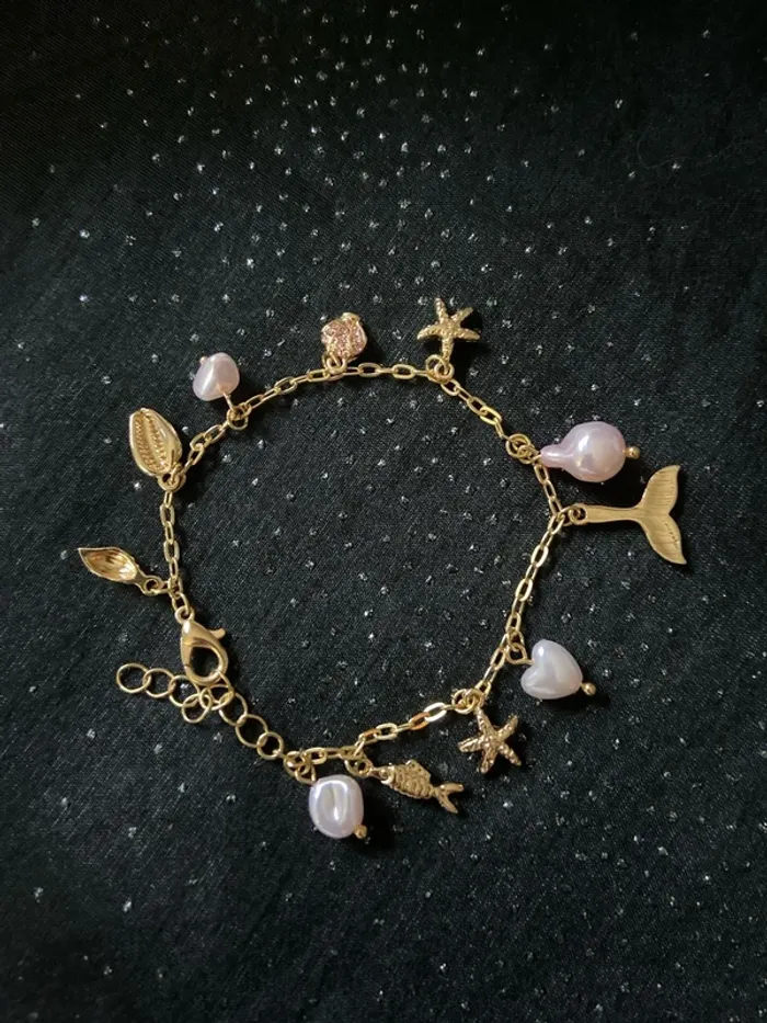 Bracelet doré breloques étoiles roses pales