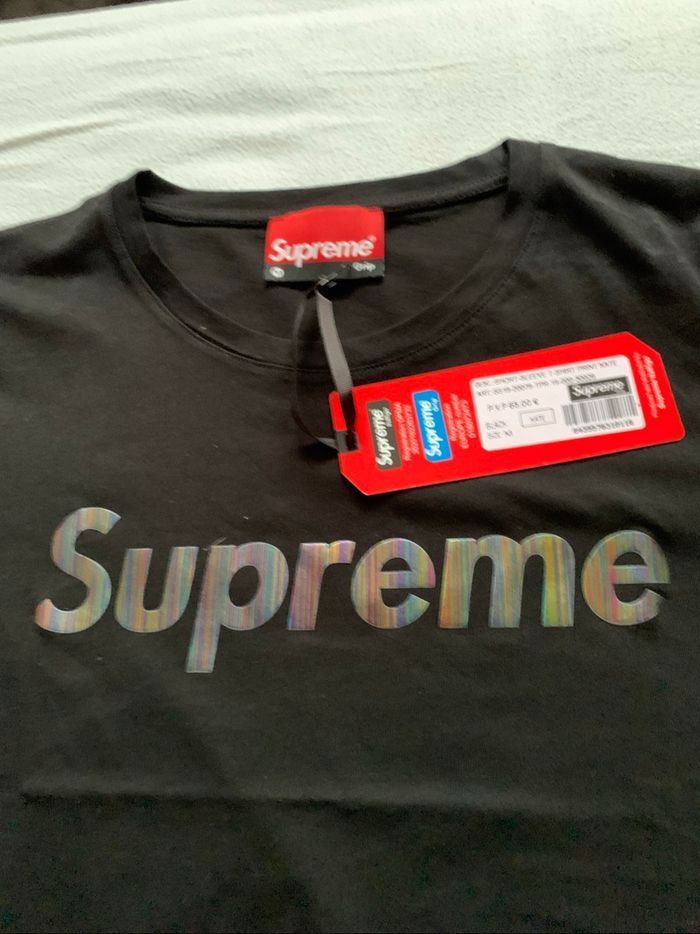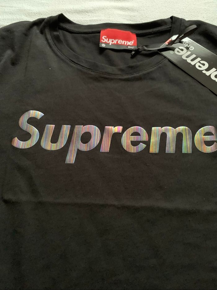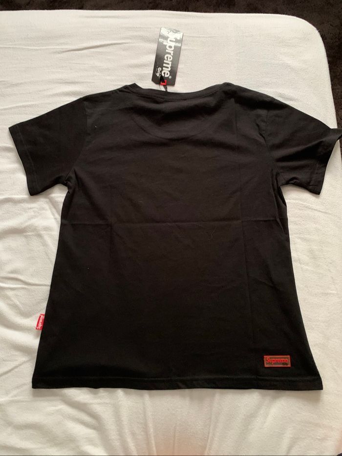 Tee shirt noir taille M de chez supreme avec le logo sur le devant, tee shirt neuf