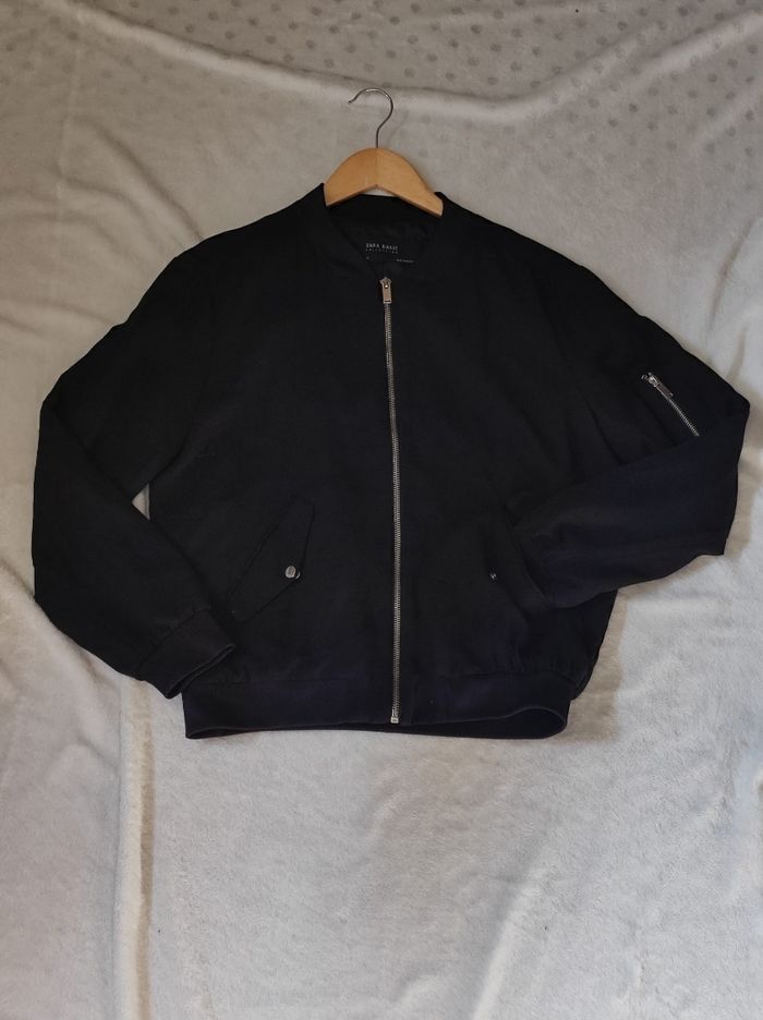 blouson mi saison légère, intérieur satiné. Poches et fermeture éclair ainsi qu'une petite poche sur le haut de la manche gauche. Marque zara en taille M. En parfait état proche du neuf ( jamais portée ).