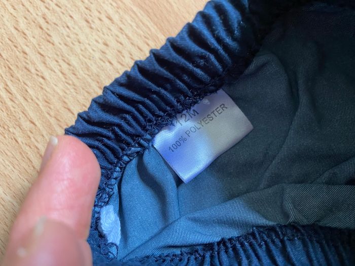 Beau pantalon léger bleu marine pour bébé garçon T. 12 mois, en polyester, en très bon état. Taille entièrement elastiquée.
