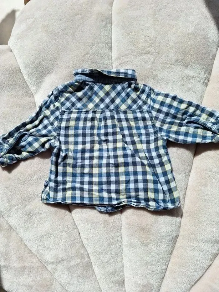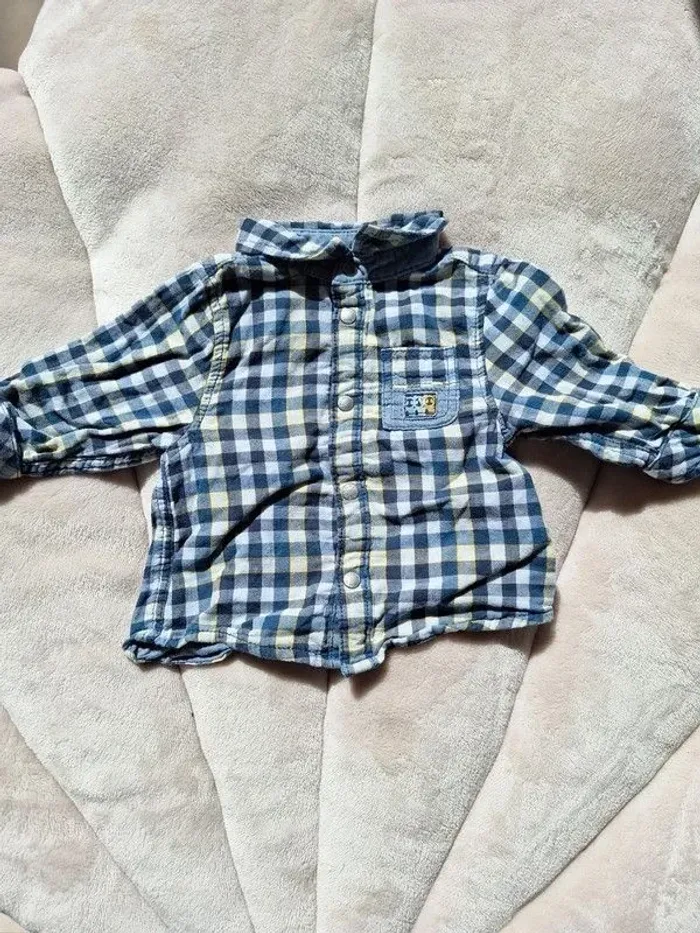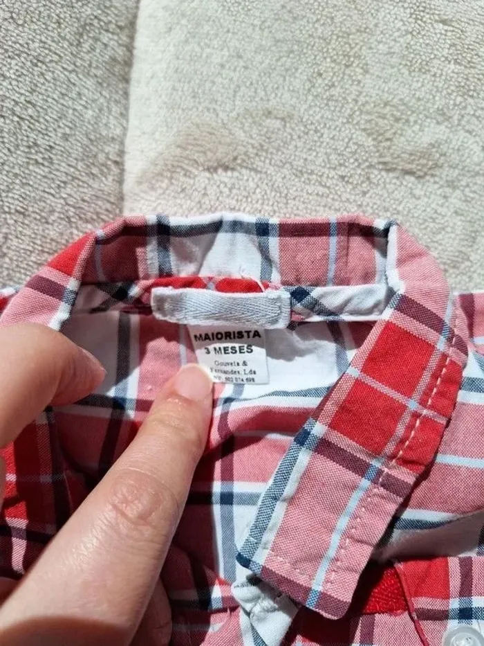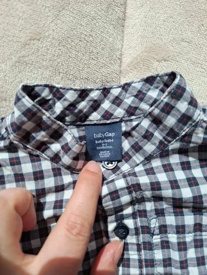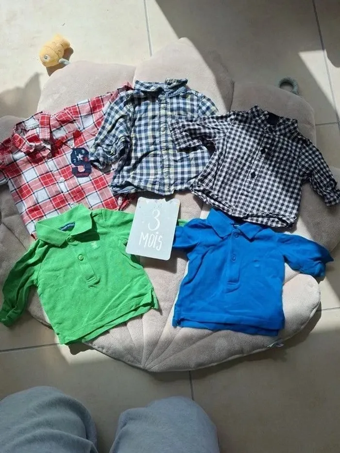 Lot de 3 chemises et deux polos taille 3 mois en très bon état - polo vert et bleu de la marque original marine - chemise rouge de la marque maiorista - chemise marine jaune de la marque obaidi - chemise marine rouge de la marque babygap #auree36_Etaille3mois