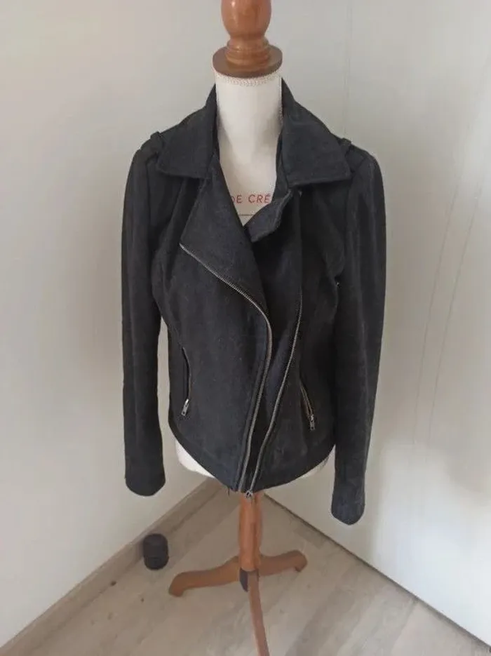 Blouson noir/gris foncé chiné camaïeu en parfait état taille 40 #vêtements #blouson #manteau #femme #taille40 #auree36_Ftaille40