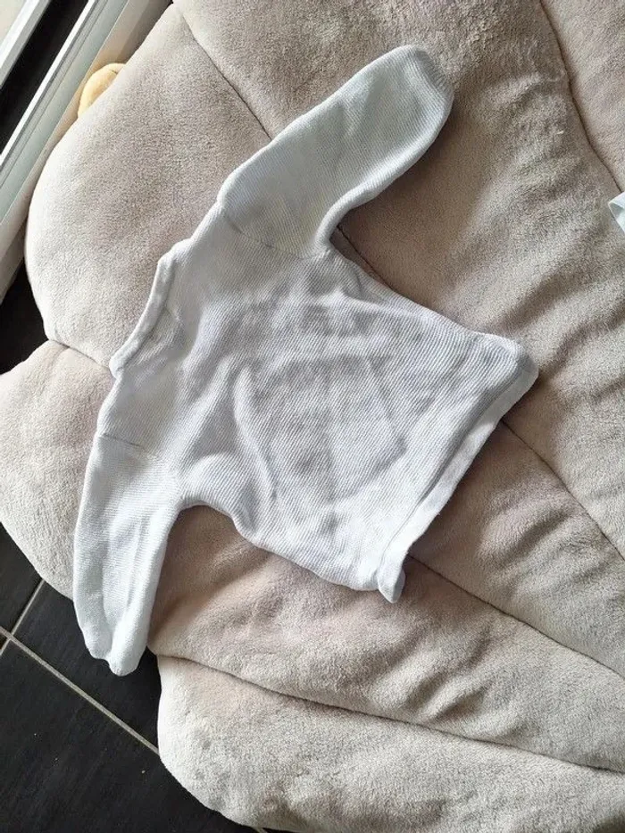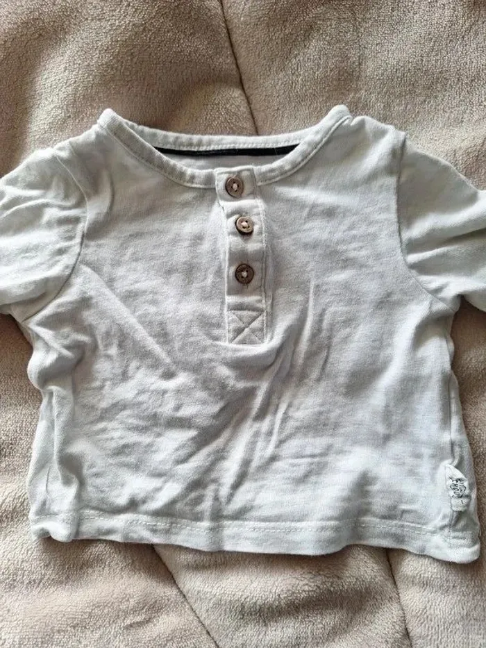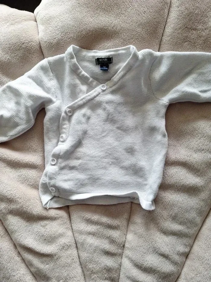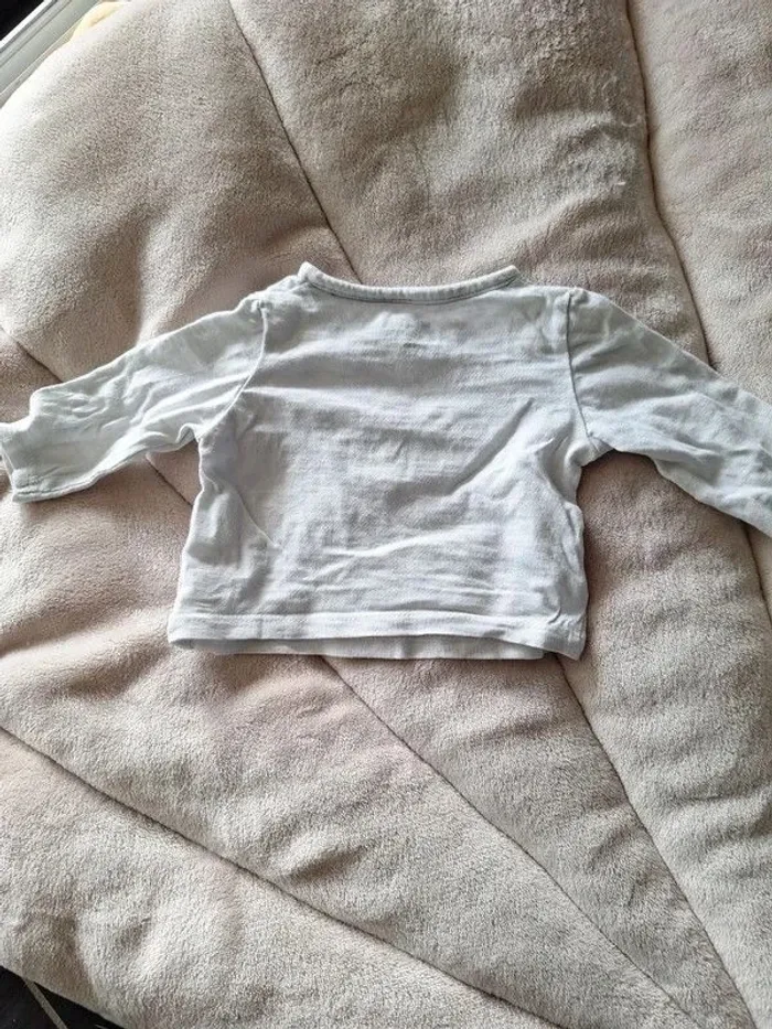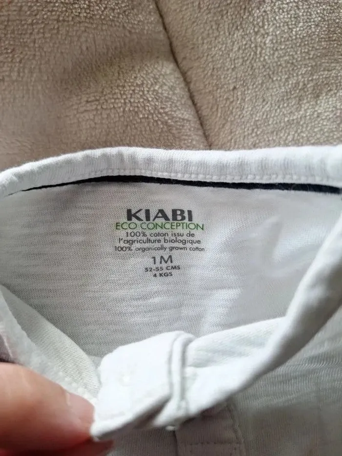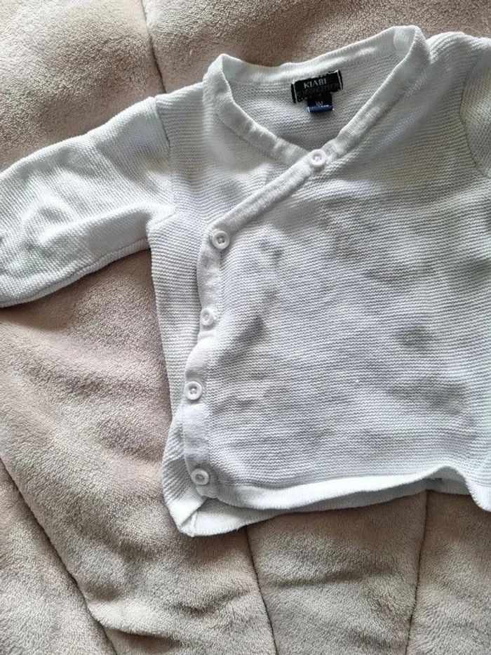 - 1 T-shirt blanc de la marque kiabi éco conception taille 1 mois en très bon état -1 gilet blanc cache cœur de la marque kiabi eco conception taille 1 mois en très bon état #auree36_Etaille1mois