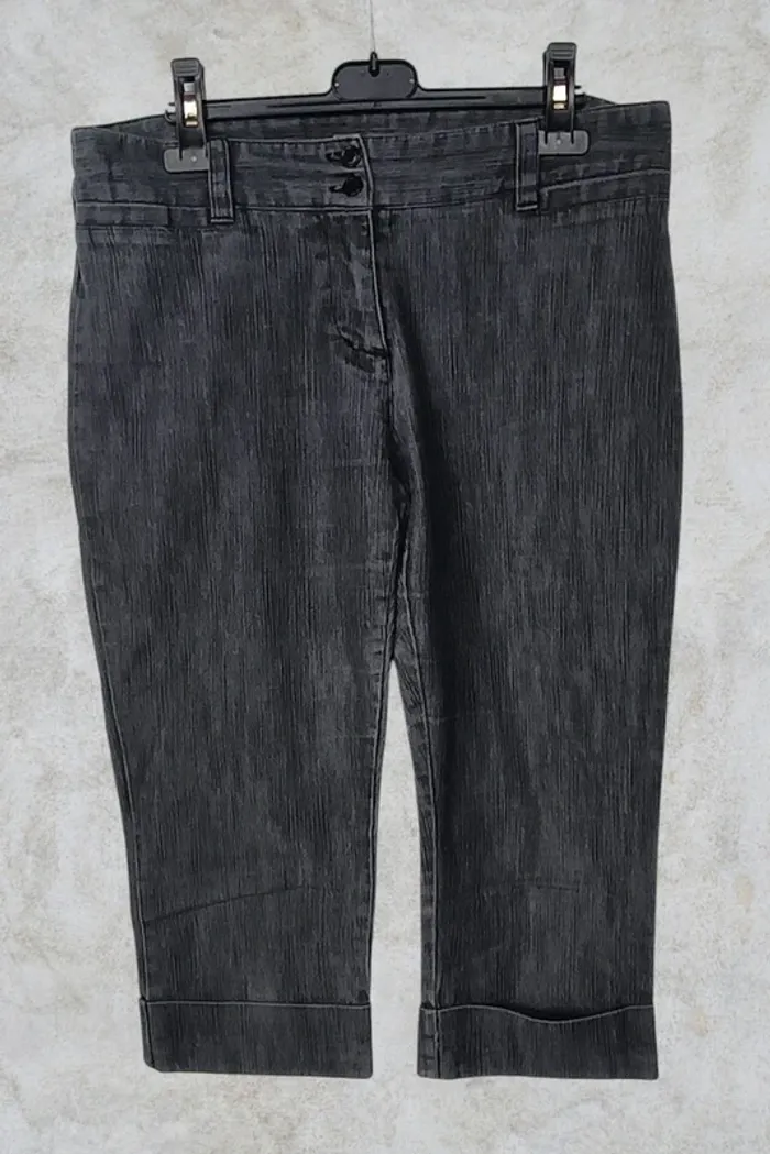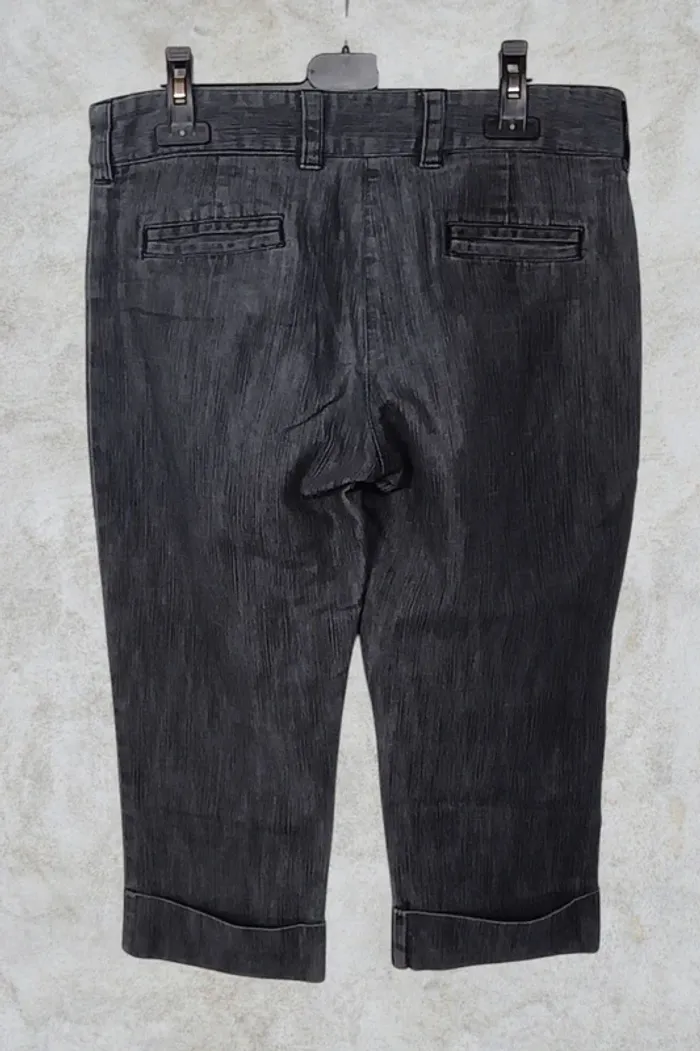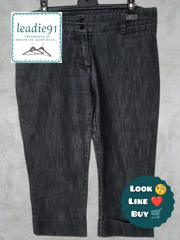 📃 𝐃𝐞́𝐭𝐚𝐢𝐥𝐬 : pantalon en jean court avec fermeture double boutons et zippée, 2 fausses poches devant et 2 vraies plaquées à l'arrière, passants ceinture