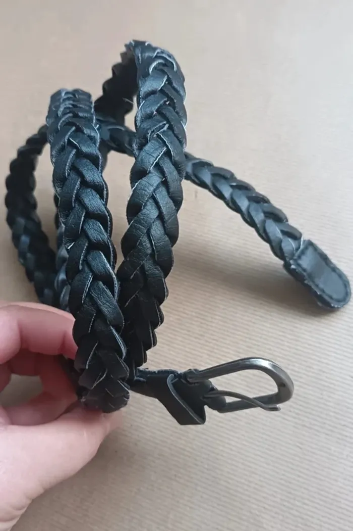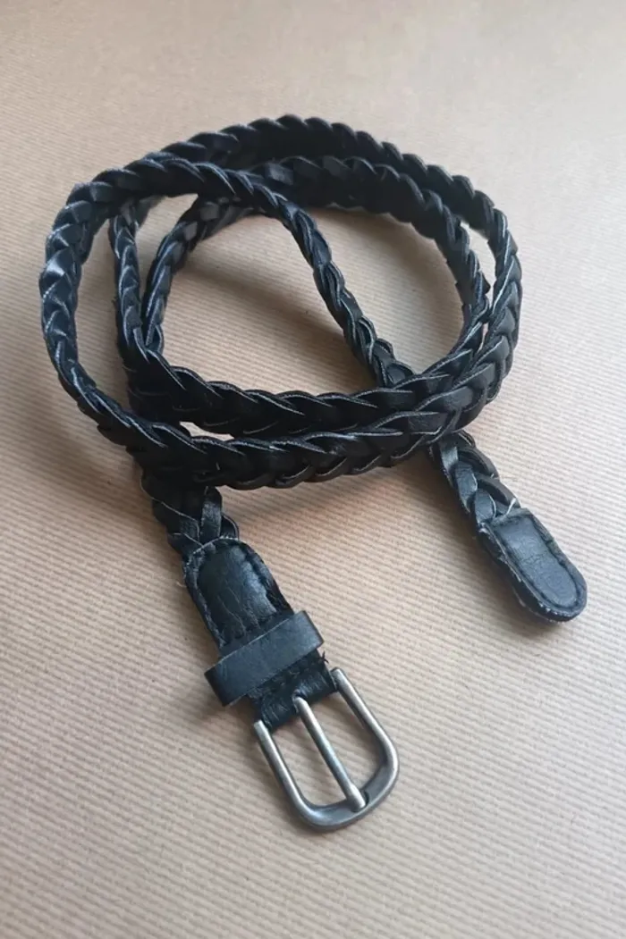 📄 ceinture tressée noir uni en imitation cuir et boucle en métal ​ fait 120 cm de long 💡 idéal avec un jean, un pantalon, sur une tunique, chemise longue, une robe ou une jupe... ajustable selon variation tour de taille durant la journée ou l'année 😊 🖱️ Tous les articles de cette catégorie #leadie91accessoiresfemme Mais aussi des vêtements #leadie91femmeXX (XX = votre taille du 34 au 56) ---------------------------------- 🔍 Pour faciliter vos recherches #️⃣ dressing trié par # (voir mon profil) 🎛️ #leadie91dressing et filtrez vos recherches ---------------------------------- 🗄️ En vente dans mon dressing : vêtements & accessoires femme, homme, adolescente, adolescent, fille, garçon et bébé, sacs, bijoux, produits hygiène et beauté, livres, jeux, jouets, fournitures scolaires, CD / DVD, vaisselle, décoration, rangement, linge de maison... ---------------------------------- 💸 Prix raisonnables 💸💸 Réductions lot 📍 Ballancourt-sur-Essonne pour RDV 🛒 Bon shopping ~ #leadie91 ♻️ 📝 Mots clés annonce site seconde main état description couleur composition tissu taille marque saison idée défaut y2k taille croisé entrecroisé entrelacé natte argenté ados réglable remise main propre 08 membre GentleVinties 24