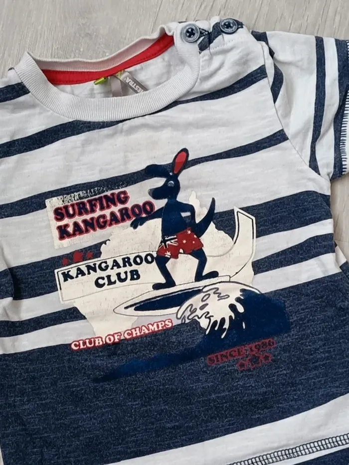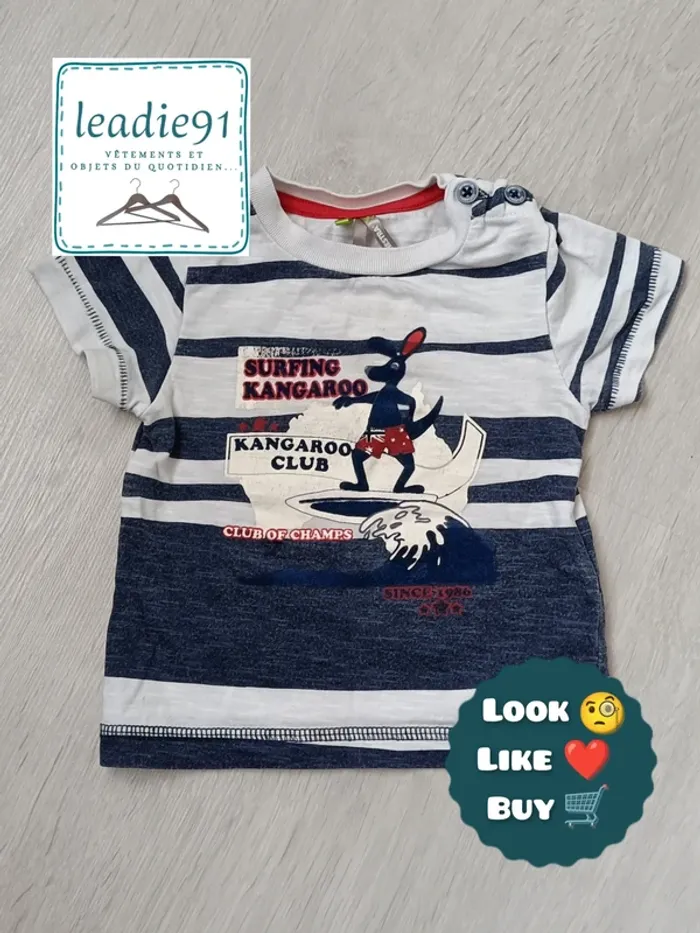😻​ Le montant de cette vente sera reversé à "Les 4 pattes solidaires de Poissy et ses environs" (lien de l'association sur mon profil) 😻​ 📄 à manches courtes et col rond avec 2 boutons sur une épaule rayé faussement marin, à bandes plus ou moins larges avec kangourou et son maillot de bain sur une planche de surf sur grosse vague et écriture SURFING KANGAROO KANGAROO CLUB CLUB OF CHAMPS SINCE 1986 avec 3 étoiles 1 bouton sur étiquette en cas de perte bleu foncé chiné délavé, blanc et rouge ​6 mois ou 67 cm 🌡️ fin printemps - été - début automne 💡 idéal pour les vacances à la mer 🖱️Tous les vêtements de cette taille #leadie91garçon6mois #leadie91garçon9mois Et pour bientôt #leadie91garçon12mois ---------------------------------- 🔍 Pour faciliter vos recherches #️⃣ dressing trié par # (voir mon profil) 🎛️ #leadie91dressing et filtrez vos recherches ---------------------------------- 🗄️ En vente dans mon dressing : vêtements & accessoires femme, homme, adolescente, adolescent, fille, garçon et bébé, sacs, bijoux, produits hygiène et beauté, livres, jeux, jouets, fournitures scolaires, CD / DVD, vaisselle, décoration, rangement, linge de maison... ---------------------------------- 💸 Prix raisonnables 💸💸 Réductions lot 📍 Ballancourt-sur-Essonne pour RDV 🛒 Bon shopping ~ #leadie91 ♻️ 📝 Mots clés annonce site seconde main état description couleur composition tissu taille marque saison idée défaut y2k bébé enfant garçon haut t-shirt tee-shirt rayure vacances surfing surfer plage remise main propre 00 membre GentleVinties 2X