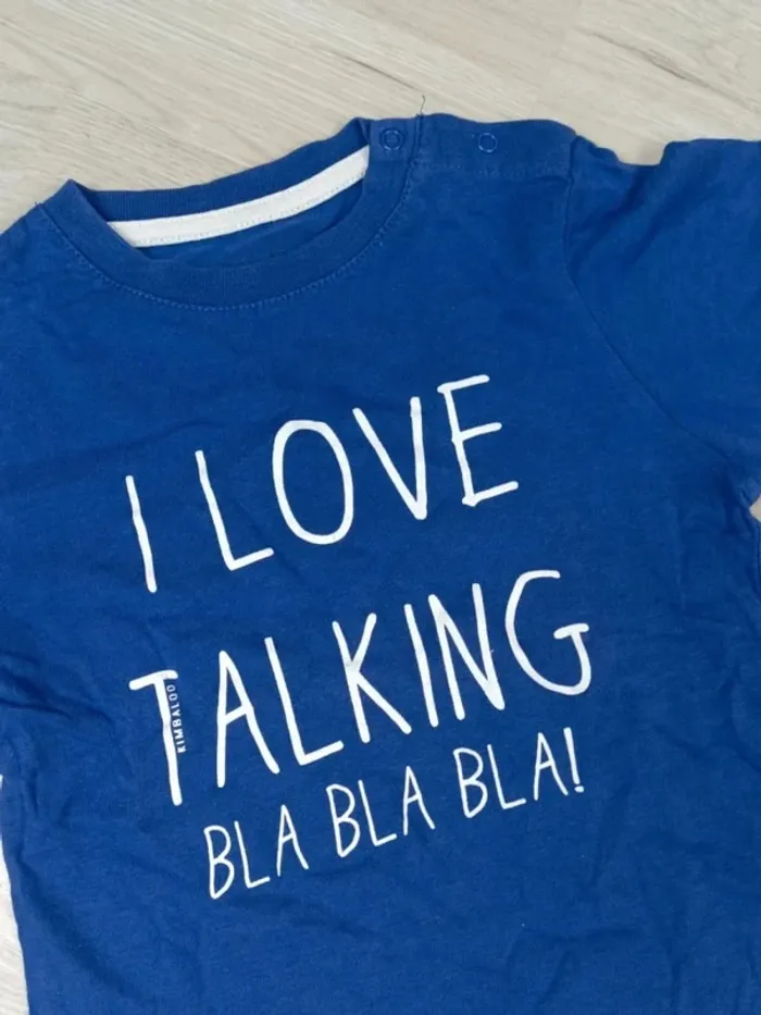 🔎 état impeccable 📄 tee shirt à manches courtes et col rond avec sur le devant écriture l love talking bla bla bla avec 2 boutons pression sur une épaule 🌈​ bleu uni et blanc ​​🧶 100% coton ​📏​ 24 mois 🏷️ Kimbaloo 🌡️ saison : fin printemps - été - début automne 💡 à offrir à un petit bavard ! Pour d'autres vêtements de cette taille #leadie91garçon24mois Et pour bientôt #leadie91garçon3ans #️⃣ dressing trié par catégories et tailles = vinted.fr/member/29213471-leadie91 📉​ réductions lot activées ​ 📍 Ballancourt-sur-Essonne 🛒 Bon shopping #leadie91