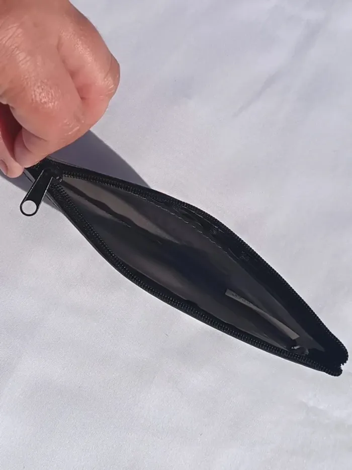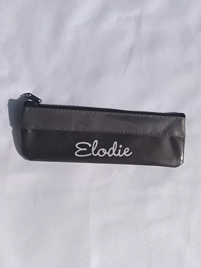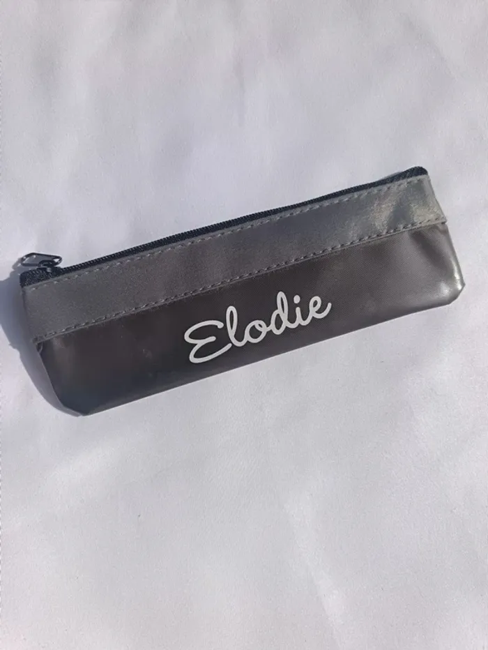 📃 𝐃𝐞́𝐭𝐚𝐢𝐥𝐬 : trousse rectangulaire et semi transparente avec Elodie d'un côté