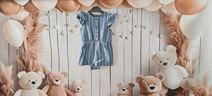 👶 Taille 3 mois – Marque Primark 💙 Barboteuse bleue rayée, légère et confortable 🎀 Manches à volants + boutons effet bois à l’avant 📌 Pressions à l’entrejambe pour faciliter le change ☀️ Idéale pour les journées d’été – très bon état #Eté_Fille3_6mois(62cm)💕