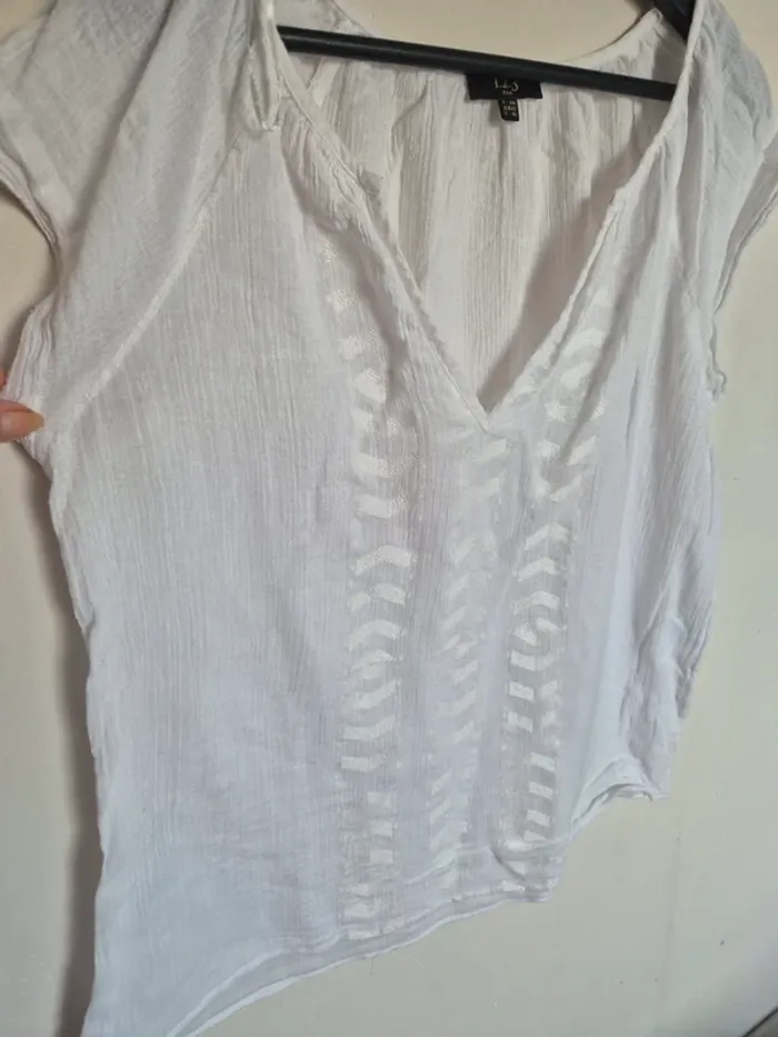 📌 Lot 20% de remise pour l'achat de 5 articles, suite ... Blouse blanche, manche courte, jolie motif discret sur le devant, ➡️Largeur à plat sous les bras  57 cm ➡️Longueur 62 cm ➡️100% coton ⭐ Excellent état ✈Envoi rapide des colis 💗 Abonnez vous à mon profil, nombreux articles ajoutés régulièrement ! 🌸 Tapez Laetitresors pour voir mes annonces #laetitresors_blouse44 #blouse #blanc #123 #coton #manche #courte #motif #chic #soirée #laetitresors