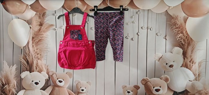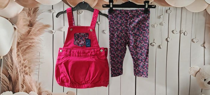 Composé d’une robe salopette fuchsia à poche fleurie et d’un legging fleuri assorti 🌺👗
