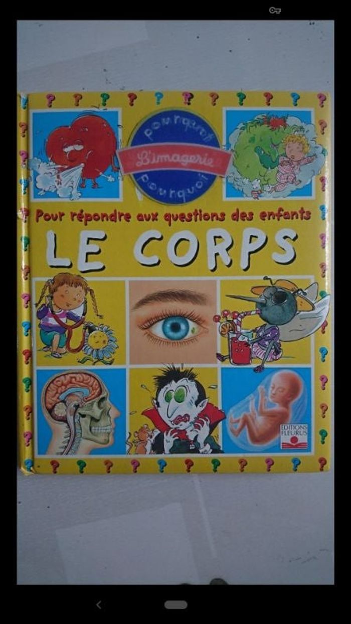 L'imagerie du corps pour répondre aux questions des enfants, pages plastifiées En très bon état excepté les coins de la couverture et un nom écrit sur la page de garde. Edition Fleurus