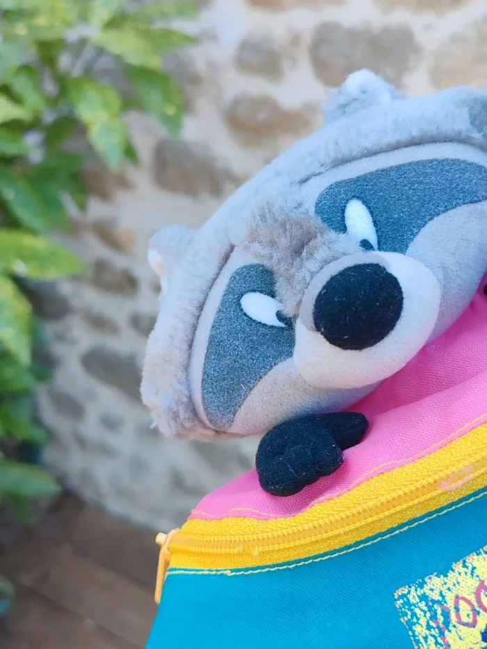 Avec petite tête en peluche de Meeko le rayon laveur du dessin animé