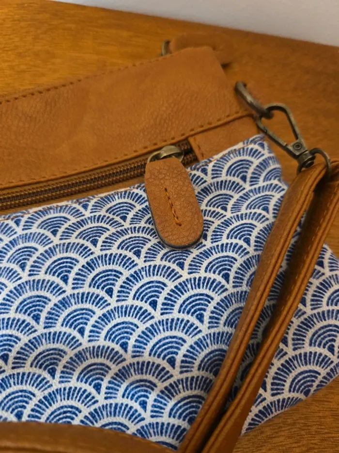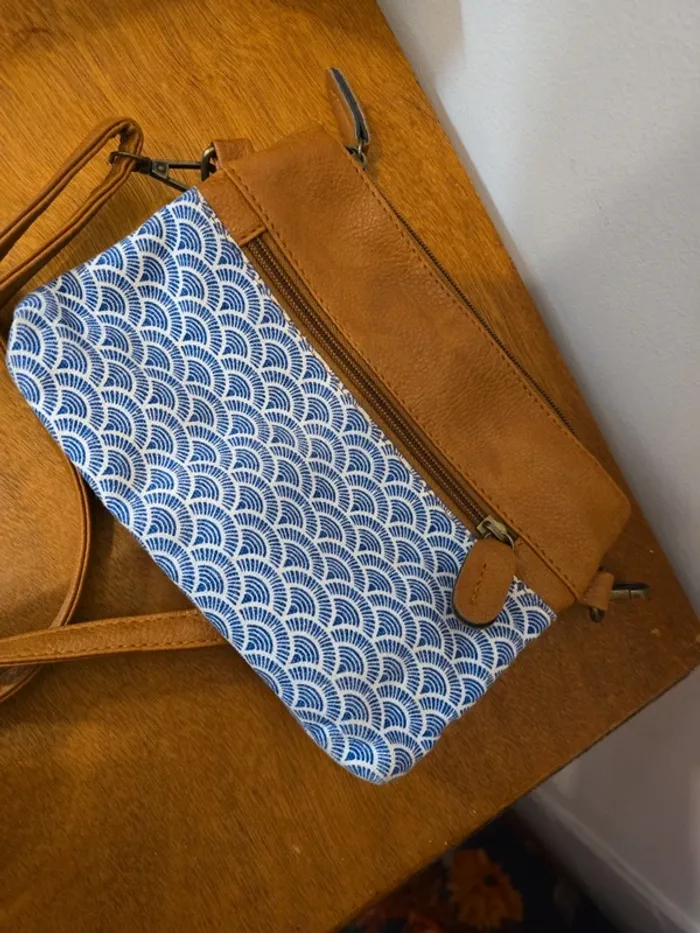 Petit sac à main bandoulière, simili cuir marron et tissus imprimés #pochette #sacbandoulière