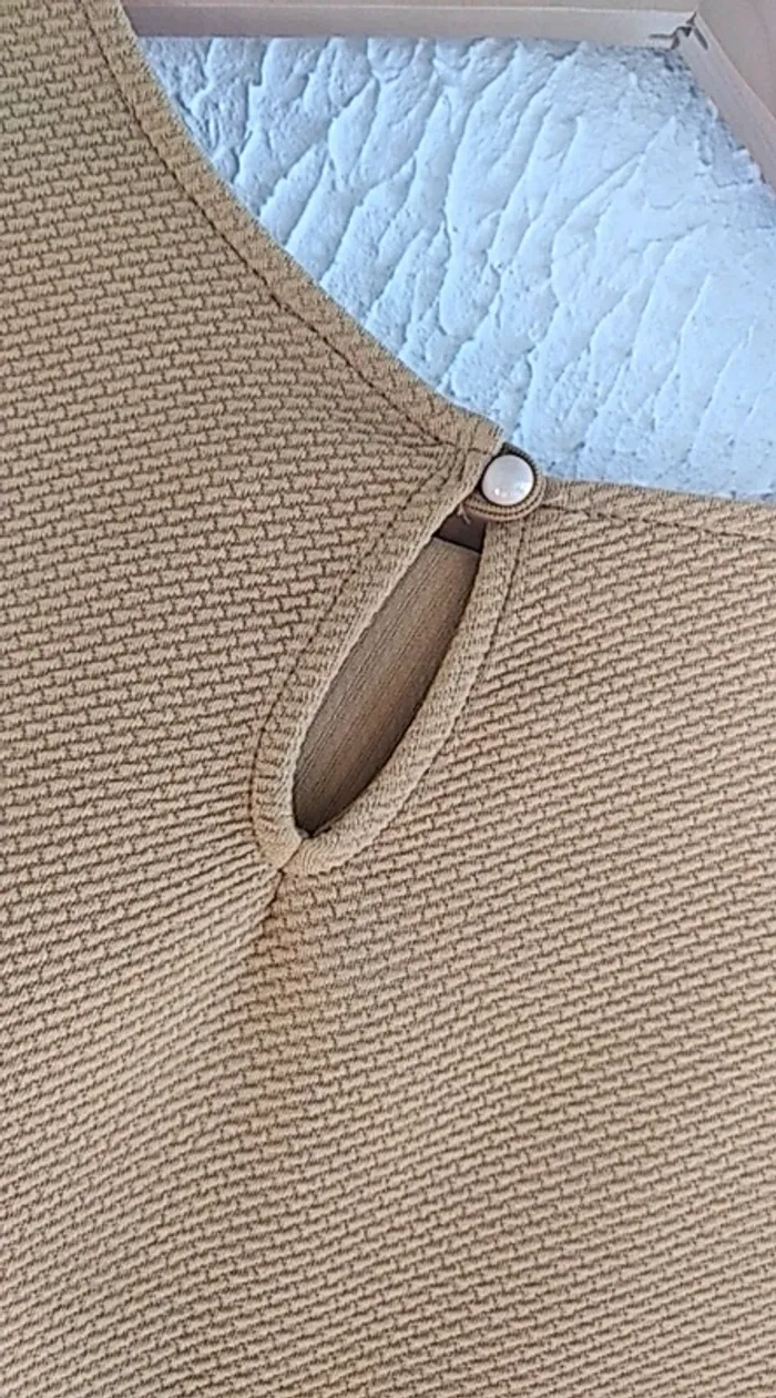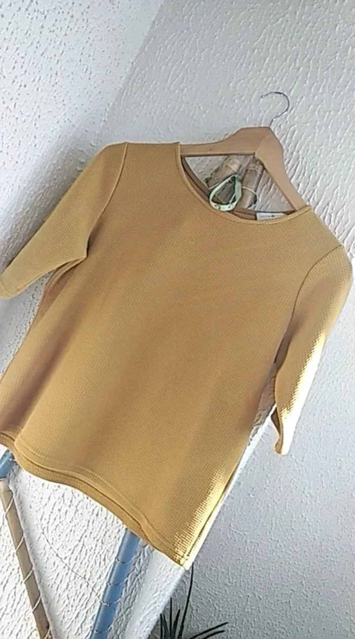 T shirt manches courtes . Épais. De couleur moutarde . Étiquette taille 1 de chez cache cache.