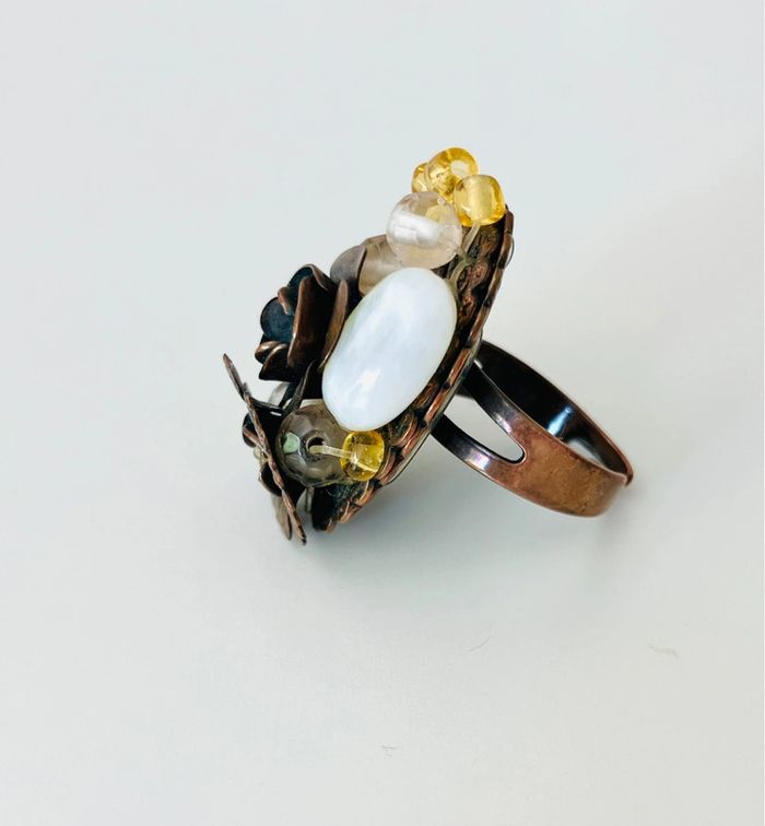 Bague ajustable style baroque avec fleurs, pierres et perles - photo numéro 5