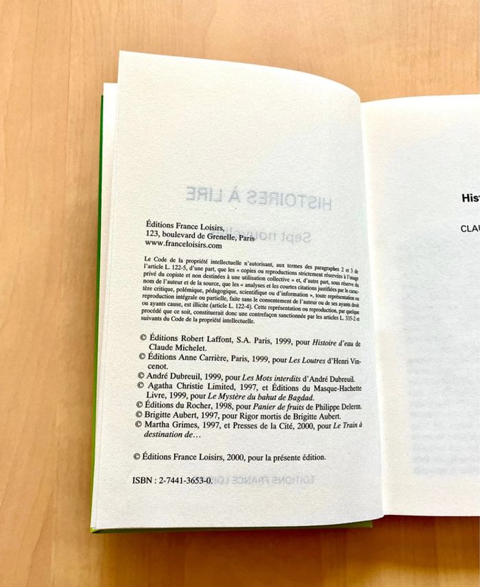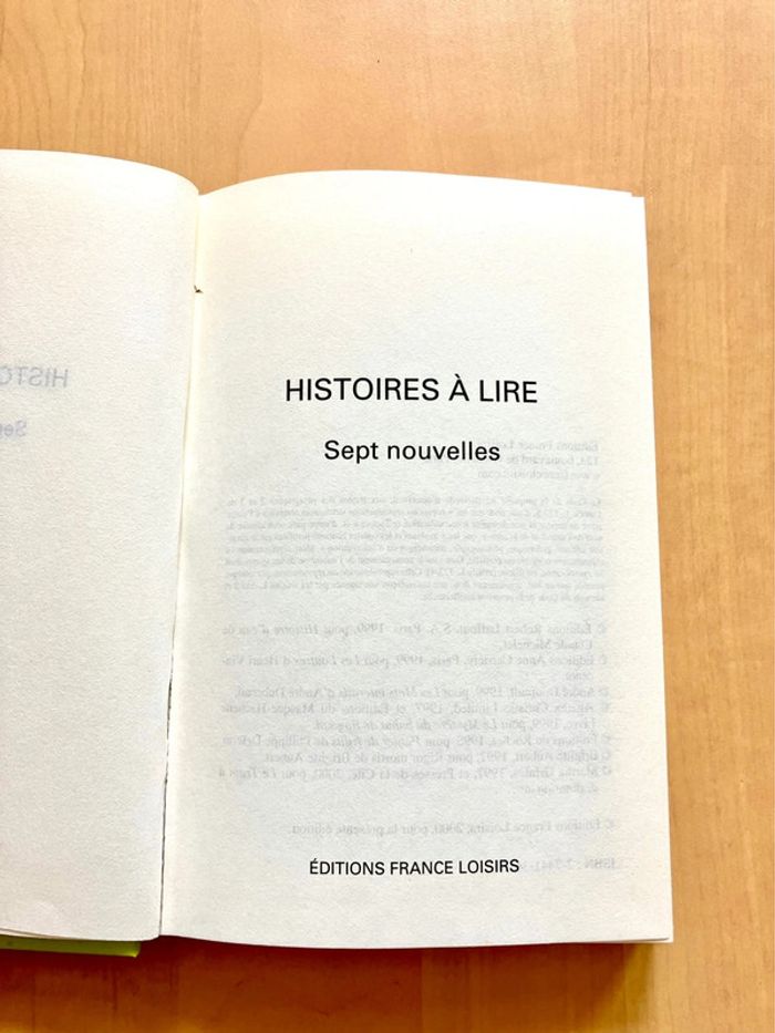 Histoires à lire - 7 nouvelles Auteurs Claude Michelet  (Écrivain) Henri Vincenot  (Écrivain) André Dubreuil  (Écrivain) Agatha Christie  (Écrivain) Philippe Delerm  (Écrivain) Brigitte Aubert  (Écrivain) Martha Grimes  (Écrivain) Éditeur ‏ : ‎ France Loisirs   Résumé Écriture jubilatoire avec Philippe Delerm, chronique douce-amère avec Martha Grimes, à la recherche du bonheur avec Claude Michelet, vengeance au goût sauvage avec Henri Vincenot, en quête de mobile avec Agatha Christie, en grand danger avec Brigitte Aubert, en plein affrontement des générations avec André Dubreuil... Découvrez des nouvelles pleines de malice, subtiles ou effrayantes, de ces auteurs, parmi vos préférés!