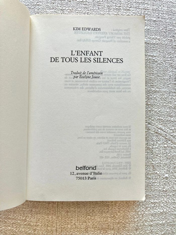 Livre L'enfant de tous les silences de Kim Edwards - Editions Belfond - photo numéro 6