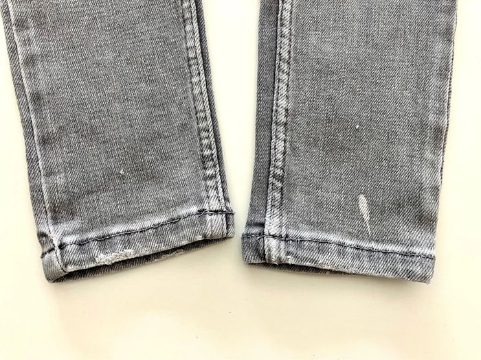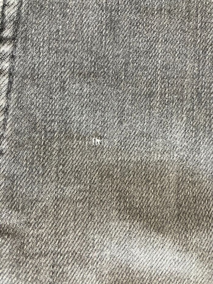Jeans gris de la marque Bershka en taille indiquée 34 Modèle skinny et high rise Se ferme devant par une fermeture éclair, deux poches et 1 pochette devant, et deux poches au dos Composition : 78 % coton + 21 % polyester + 1 %élasthanne Lavable en machine - Envoyé lavé et repassé Dimensions : longueur : 93.5cm + entrejambes : 70 cm + taille non étirée : 26 cm A noter : en bas jambe gauche trace blanche + dos jambe droite : petite trace blanche + bas du jeans used + petit accroc devant jambe droite