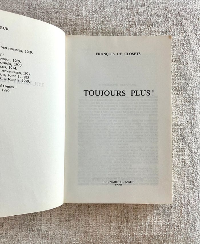 Toujours Plus ! de François De Closets - Editions Grasset