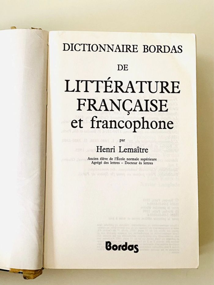 Dictionnaire Bordas de Littérature Française et francophone de  Henri Lemaître – Editions Bordas Livre abîmé et rescotché   Biographies sur les auteurs et exemples de leurs oeuvres