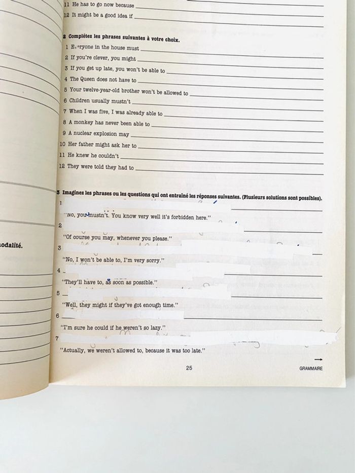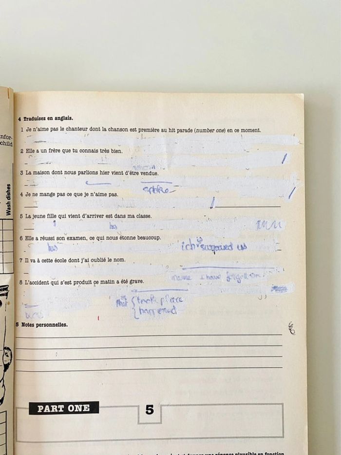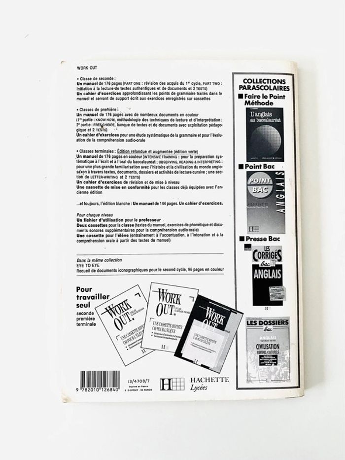 Work out  cahier exercices anglais seconde – éditions Hachette Sur certaines pages, les exercices ont été faits, j’ai mis du blanco, j’ai effacé et gommé mais on voit encore (voir photos comme exemple)