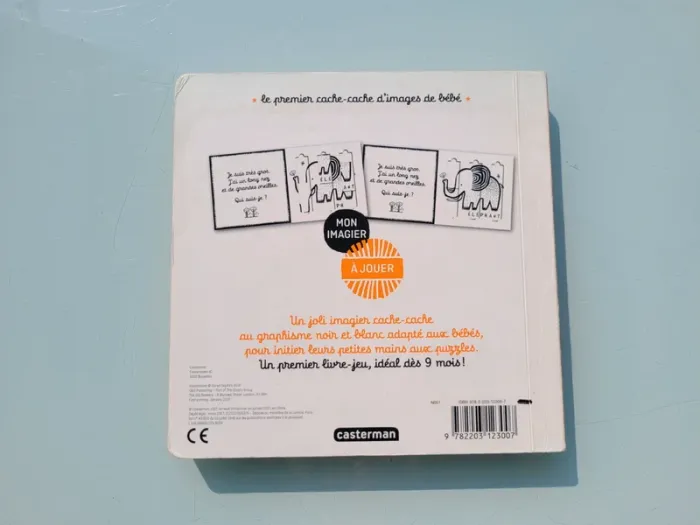 CASTERMAN MON IMAGIER À JOUER LE PREMIER CACHE-CACHE D'IMAGES DE BÉBÉ Un livre tout-carton qui initie les bébés aux premiers cache-cache d'images et reconstitution de puzzles, grâce à un astucieux système de glissières. Une tache sur la couverture arrière, peu visible (cf photo) et bords légèrements usés mais en très bon état intérieur Mes autres livres enfants : #livreenfantmooglou