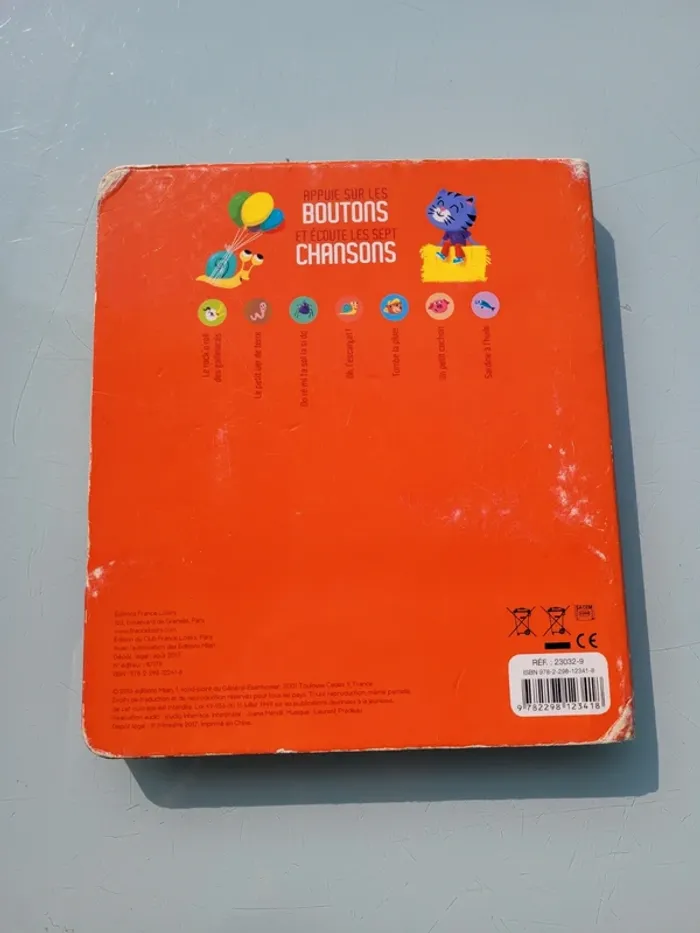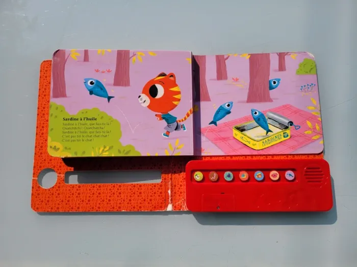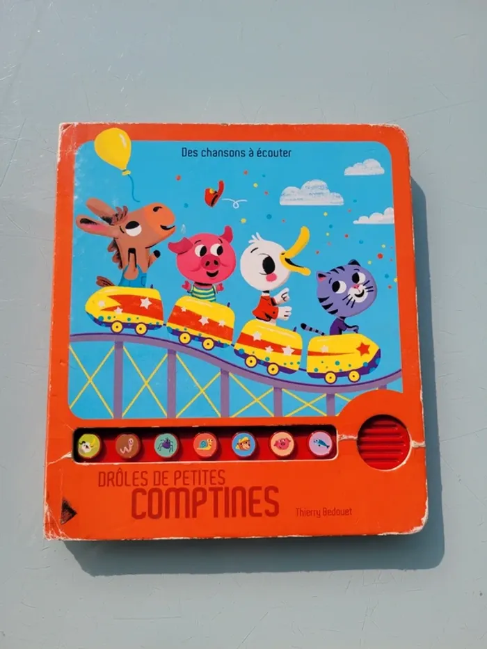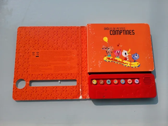 DES CHANSONS À ÉCOUTER DRÔLES DE PETITES COMPTINES Grâce à son boîtier sonore et à ses boutons, les plus petits peuvent écouter en toute autonomie 7 comptines pour rire : "Le Rock'n'roll des gallinacées", "Le Petit Ver de terre", "Sardine à l'huile"... Couvertures intérieure et extérieure abîmées, les 7 puces fonctionnent, bon état général Mes autres livres sonores : #livresonoremooglou Mes autres livres enfants : #livreenfantmooglou
