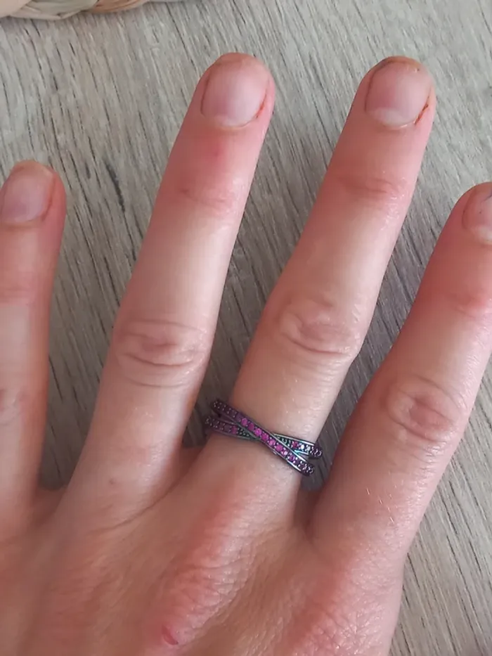 Bague en acier inoxydable noir, avec des fausses pierres rose fushia taille 18 (correspond a du 57) Neuve D'autres modeles de bagus dans mon dressing. Réductions appliquées sur les lots #noel #noel2025 #saintvalentin #saintvalentin2026 #stvalentin #stvalentin2026 #valentinesday #valentinesday2026 #cadeaufemme #bijoux #fiancailles #bague #baguefemme