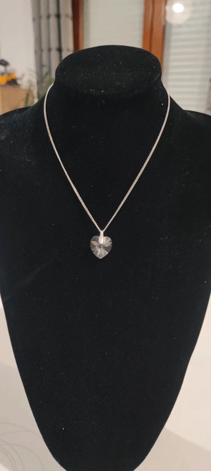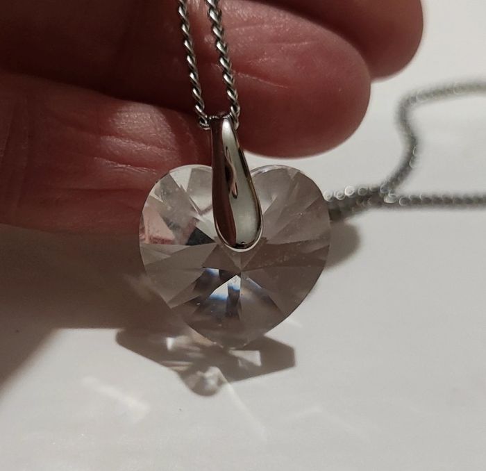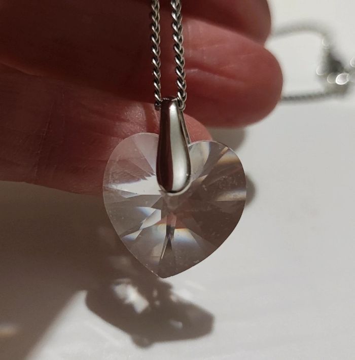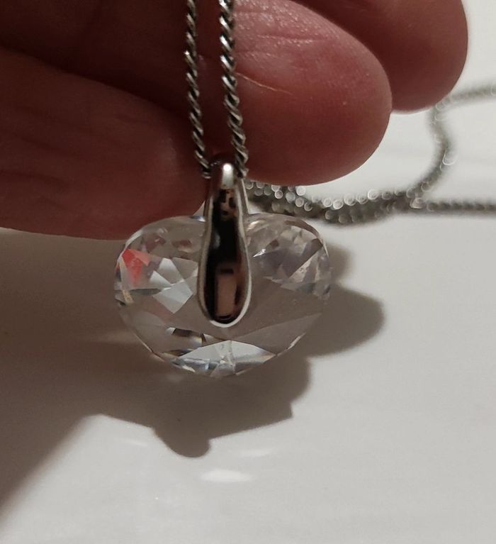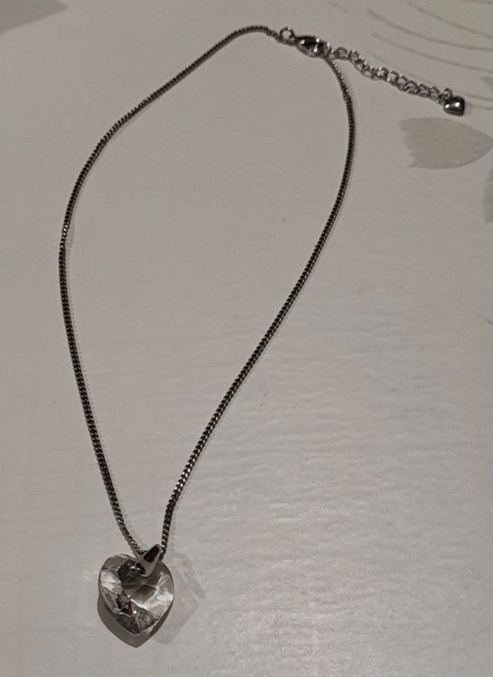 Beau collier réglable avec pendentif coeur transparent. Dimensions sur dernière photo Parfait état