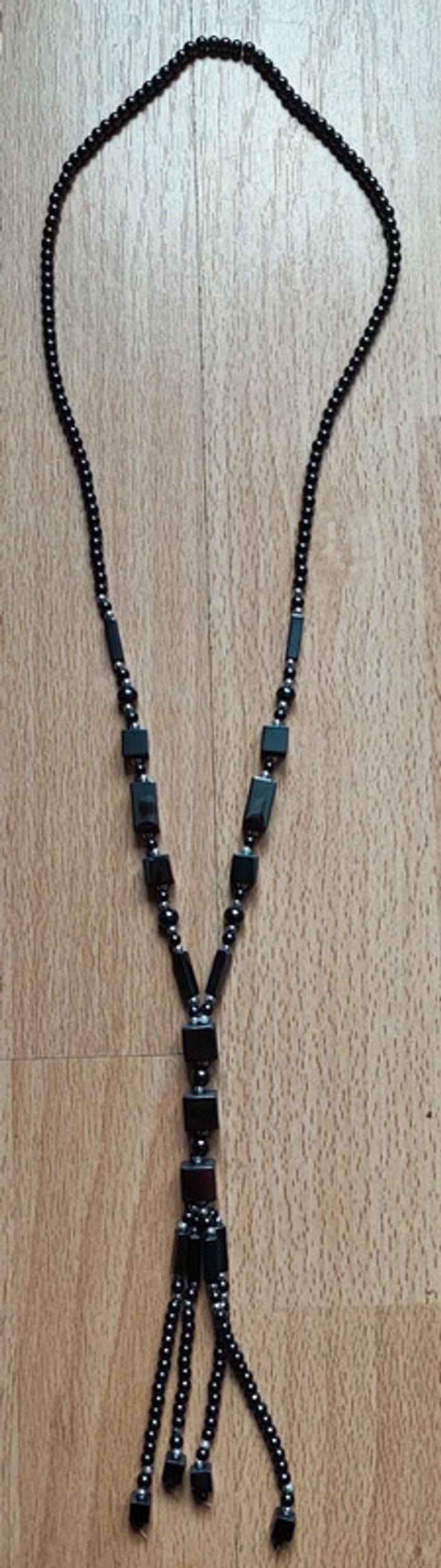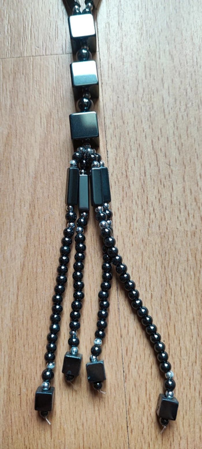 Beau sautoir noir Effet brillant. Un peu lourd Parfait état Dimensions sur la dernière photo