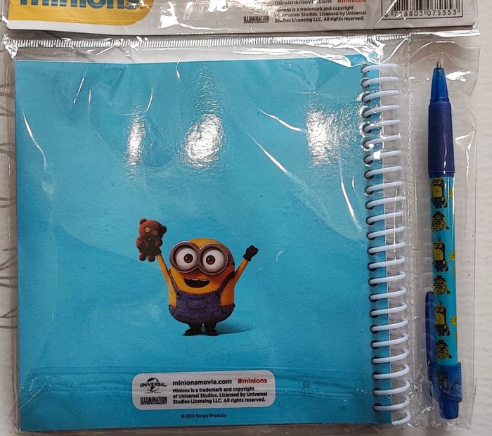Lot neuf sur les Minions - carnet et son stylo (14x14cm) - trousse avec crayon, gomme, taille crayon, règle et petit carnet Neuf, jamais ouvert