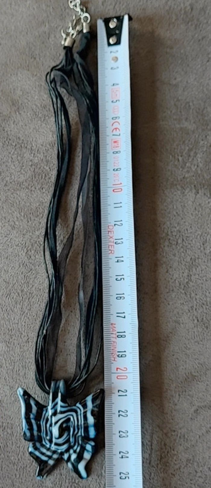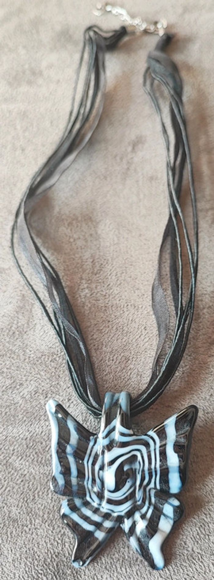 Collier réglable avec pendentif en verre en forme de papillon noir et blanc Très bon état