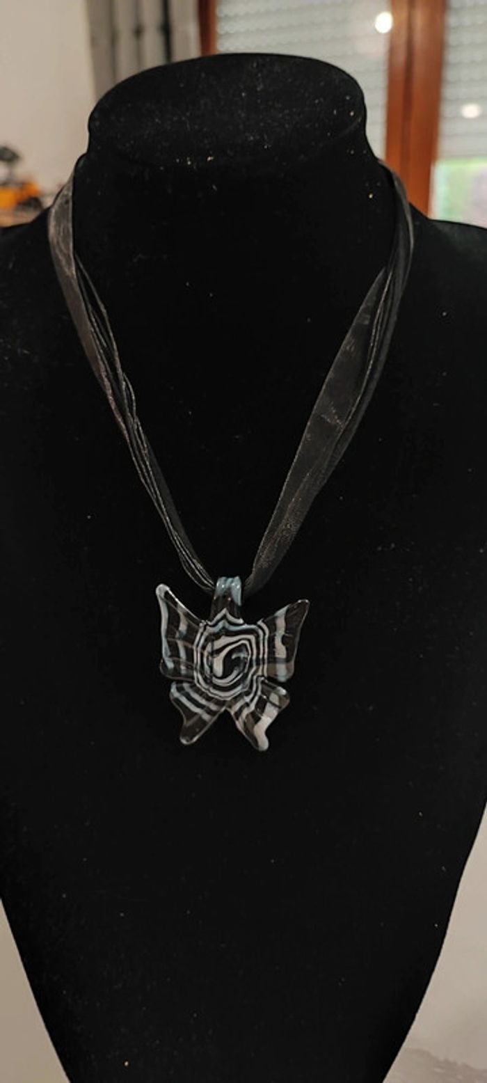 Collier pendentif papillon en verre - photo numéro 3