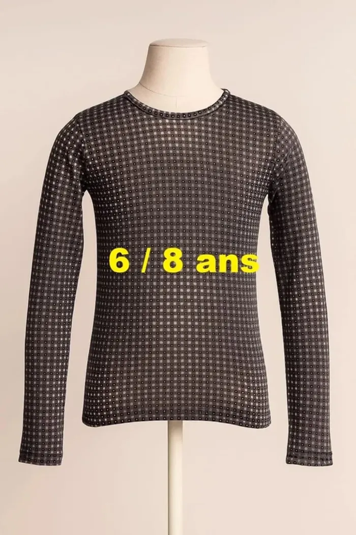 Tee shirt léger manche longue gris motif noir blanc La Fée Maraboutée Taille 6 / 8 ans