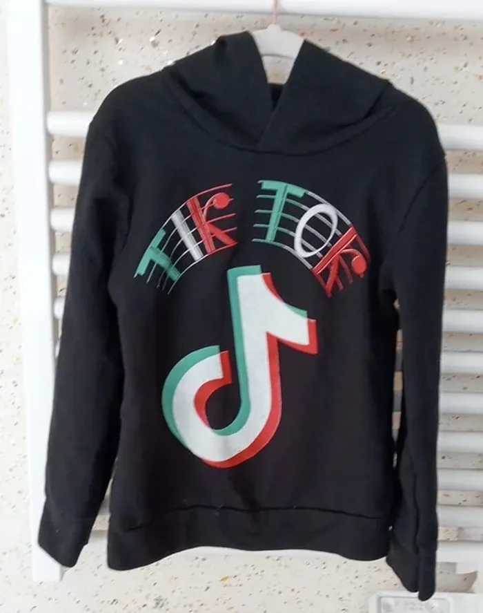 Sweat avec capuche noir imprimé blanc rouge vert Taille 6 ans #sycaro35 #sycaro356ans #taille6ans #sweat #capuche #noir #blanc #rouge #vert B3840