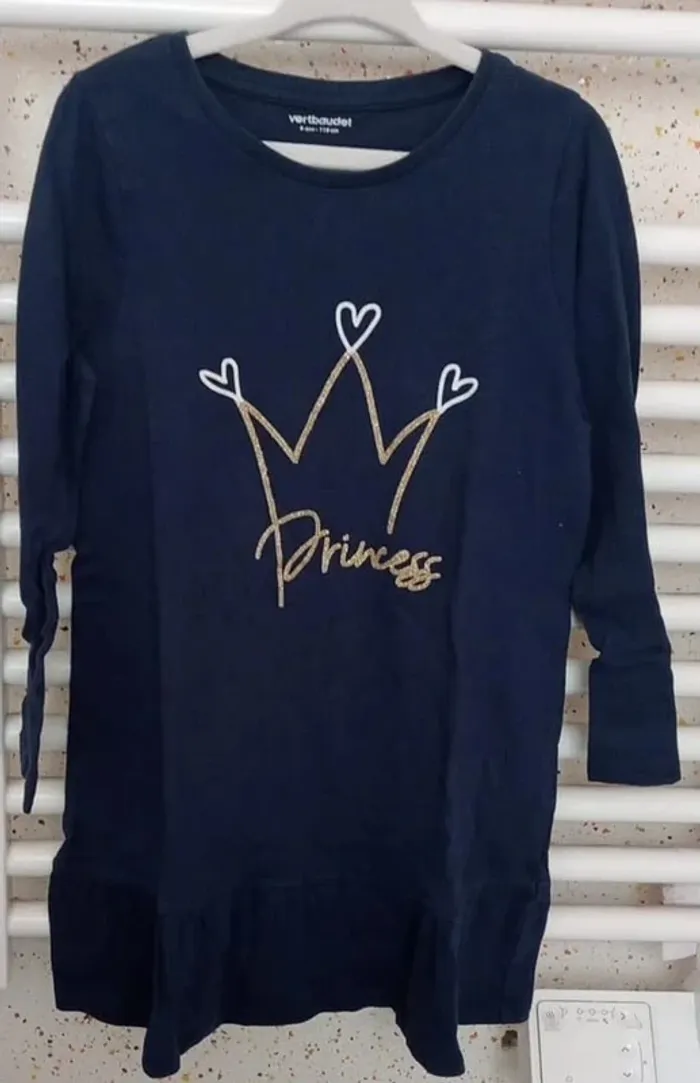 Robe bleu marine motif couronne doré brillant Vertbaudet Taille 6 ans #sycaro35 #sycaro356ans #taille6ans #robe #bleumarine #couronne #dore #brillant #vertbaudet B4752