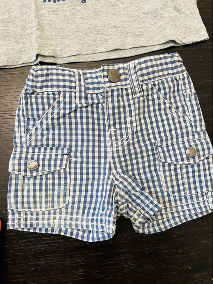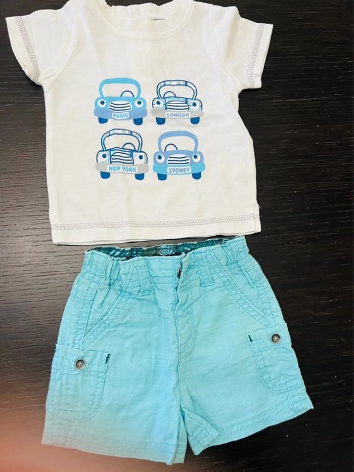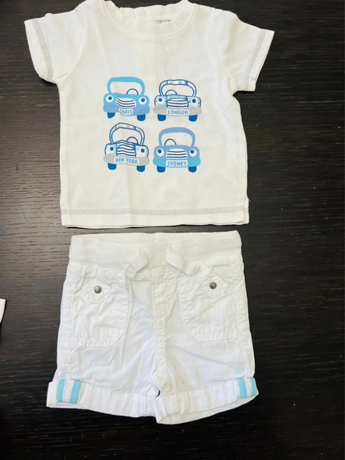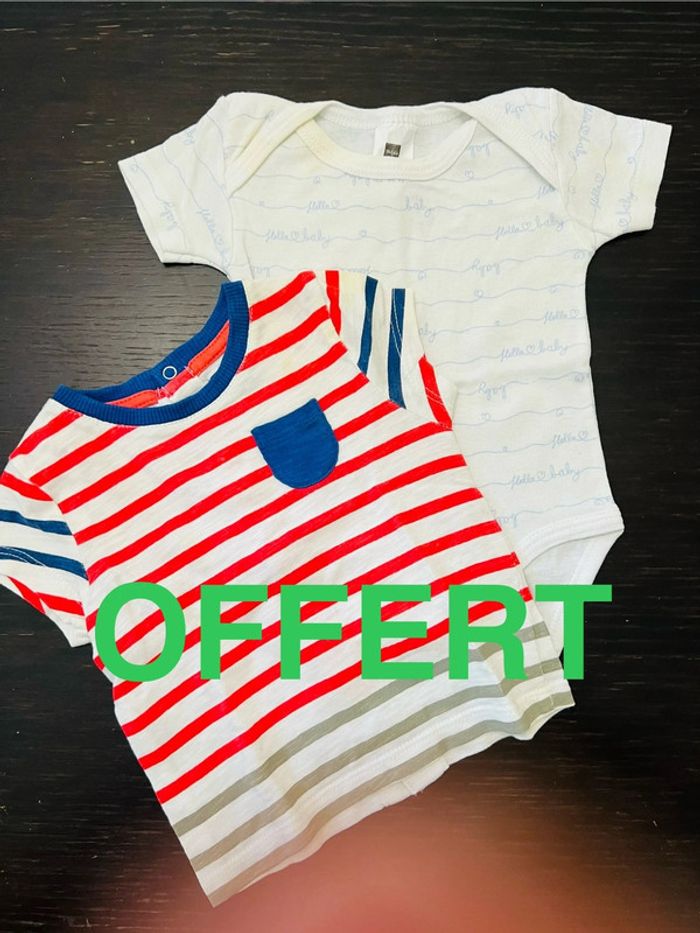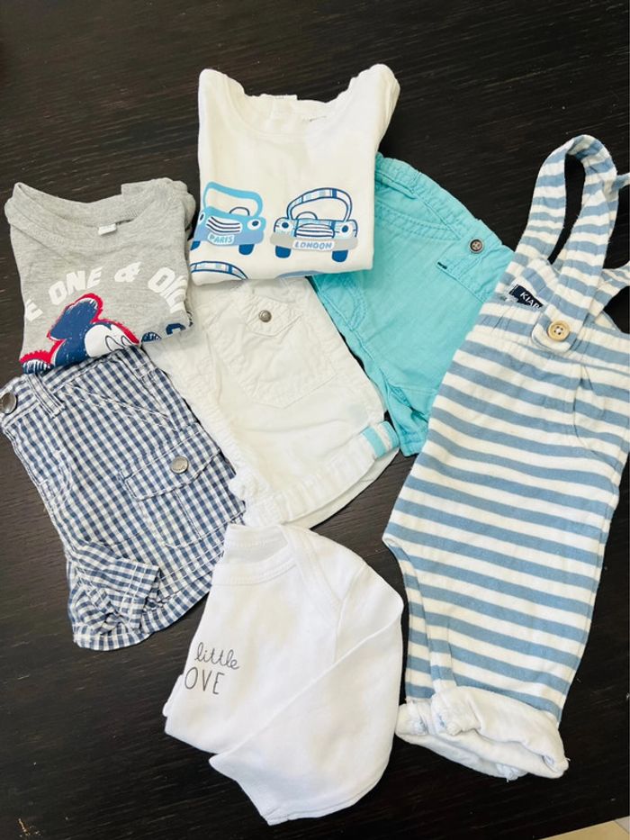 Super lot été pour faire de votre petit prince un vrai beau gosse Lot composé de: - 2 tee shirts en très voire excellent état - 3 shorts avec taille élastiquee ( le blanc et le turquoise sont en très bon état / le bleu foncé a carreau a une légère décoloration sur le bas de la jambe droite - je préfère le dire même si c’est à peine visible) - une salopette Kiabi en coton peigne magnifique !! - un body kiabi manches longues comme neuf ( il ne l’a jamais porté) Et j’offre 2 pièces supplémentaires avec ce lot Un body manche courte en coton ( légèrement taché au col mais en excellent état ) et un tee shirt 3 mois toujours légèrement taché en haut sur l’épaule . Avec moi aucune surprise tout est bien détaillé. Je prends soin de l’entretien des vêtements de mon fils. Et pour avoir eu des expériences malheureuses sur Vinted… cela compte aussi 🤓 Regardez mes annonces pour garçon - j’ai beaucoup de propositions dans mon dressing
