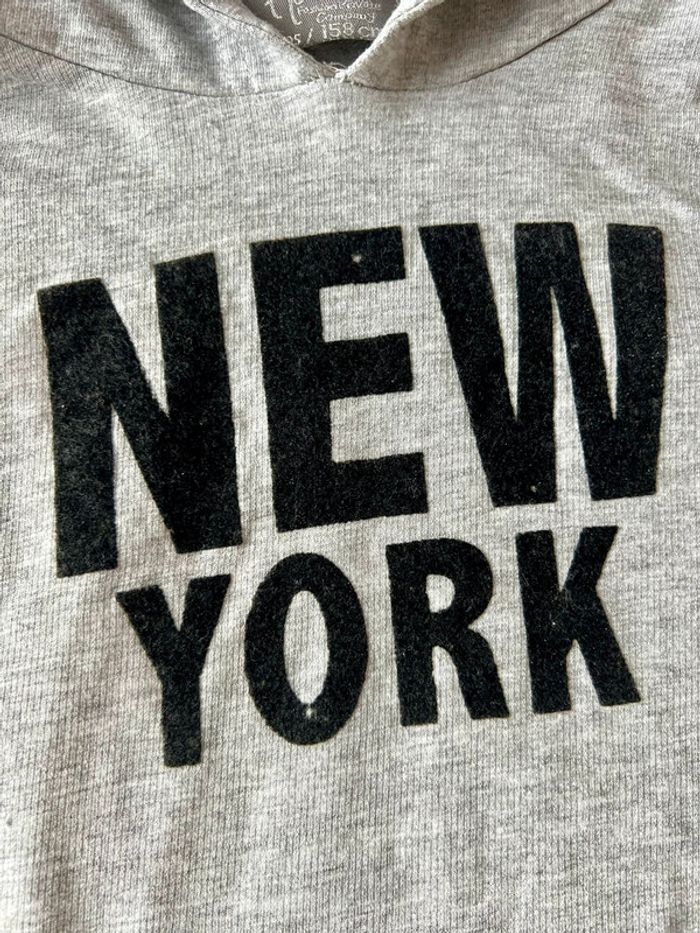 Sweat en coton avec capuche - avec la mention New York en lettres velours. En très bon état Passe partout - idéal pour tous les jours