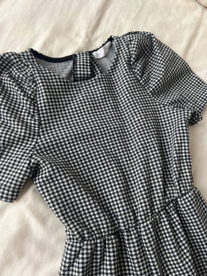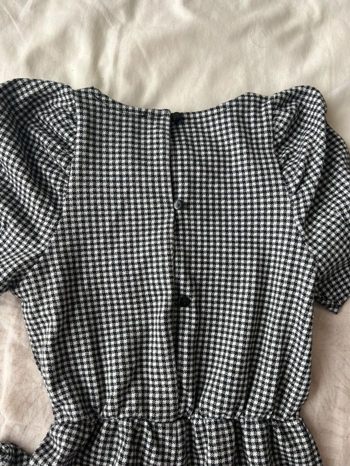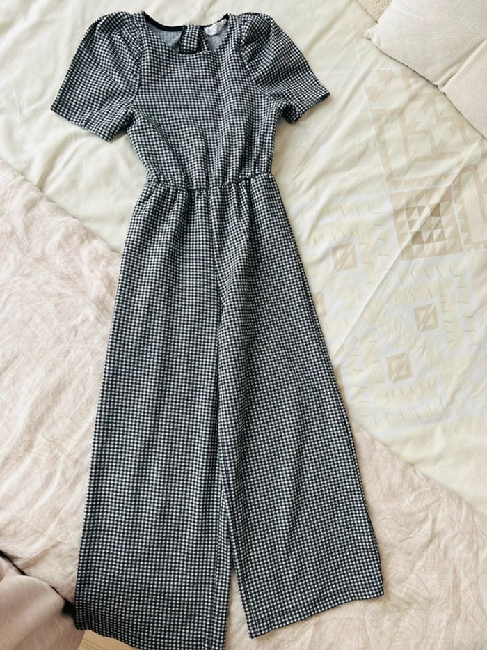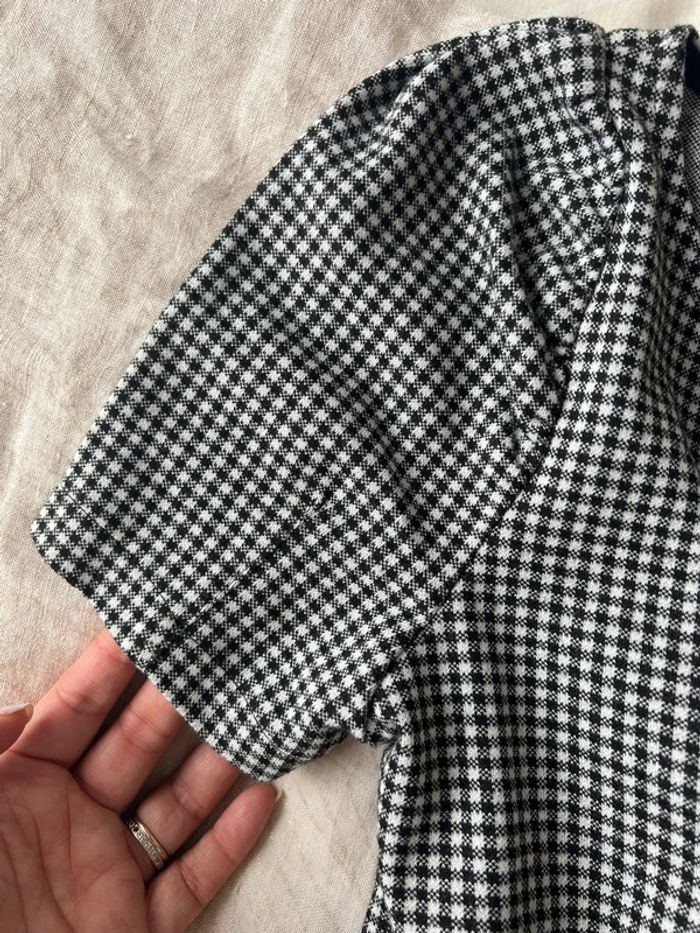 Magnifique combinaison d’hiver en excellent état. De beaux détails comme les manches légèrement repiquées et un joli boutonnage dans le dos. Motif pied de poule Excellent état