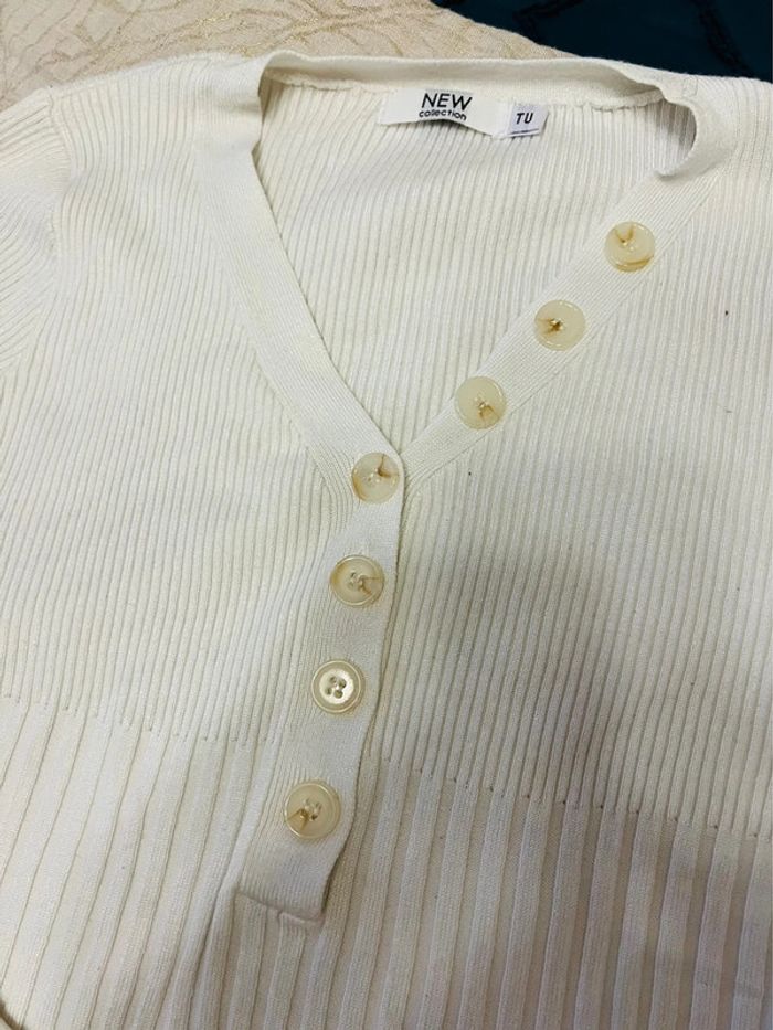 Pull col V crème - XS - photo numéro 1