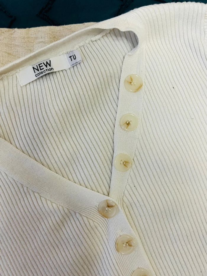 Pull col V crème - XS - photo numéro 3