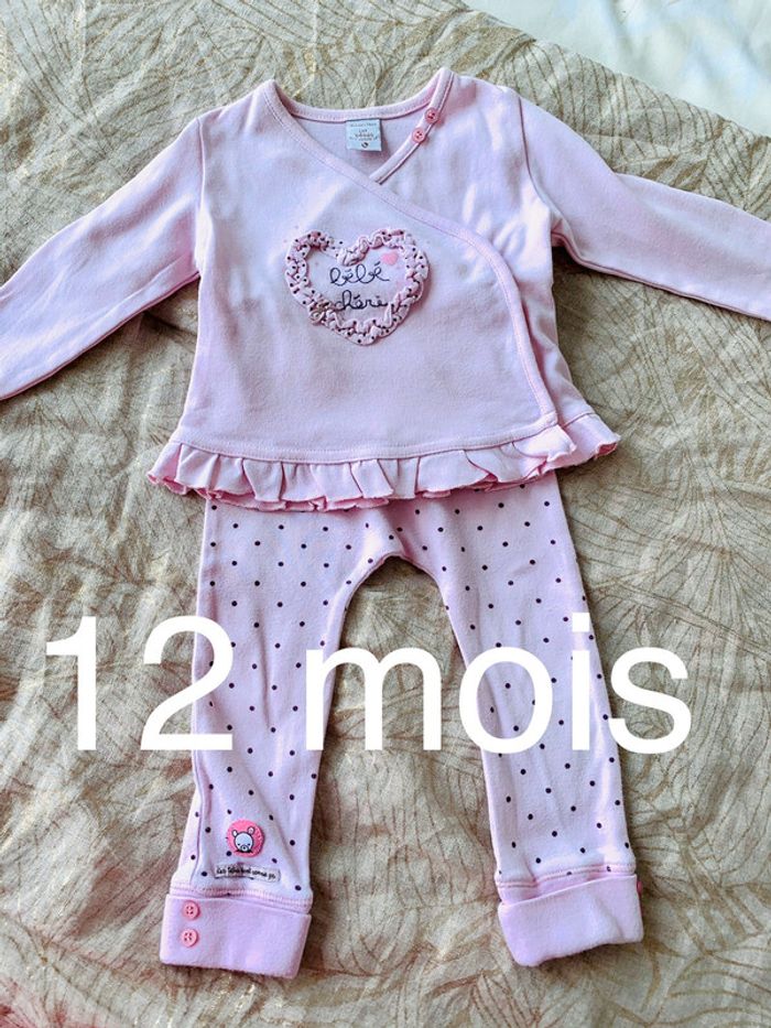 Pyjama coton 2 pièces - cache cœur 12 mois - photo numéro 1